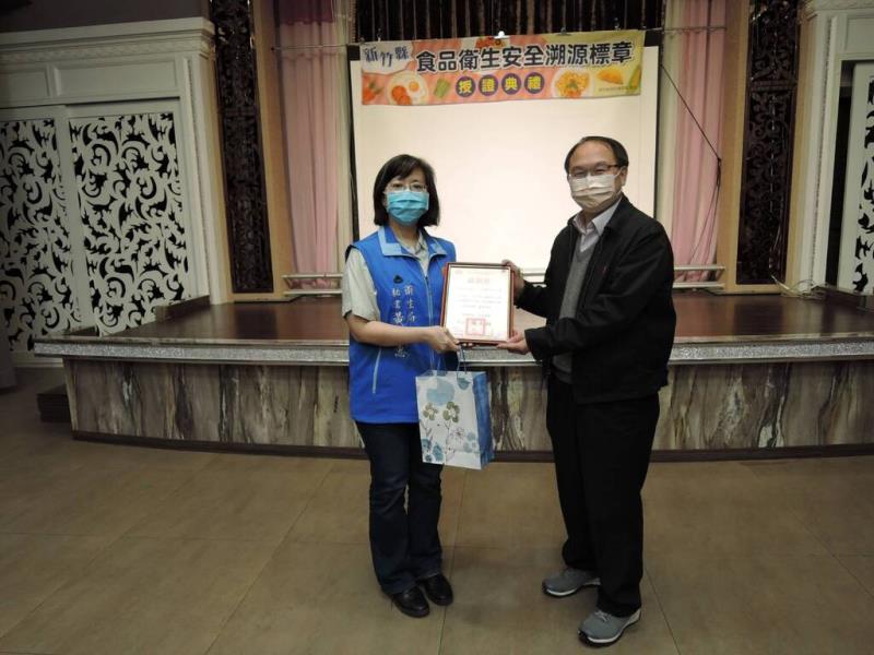 元培食科系協助新竹縣政府把關讓製麵業衛生安全,系主任張宜煌(右)代表鳩受縣政府感謝狀