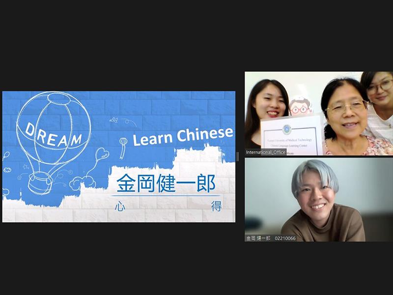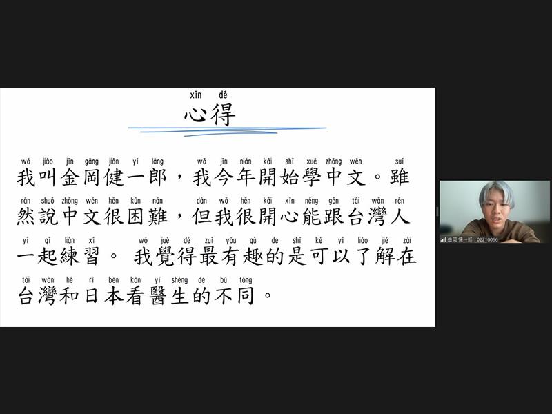 元培醫護華語特色課程 吸引日本學生金岡健一郎(右下)線上學習並順利結業