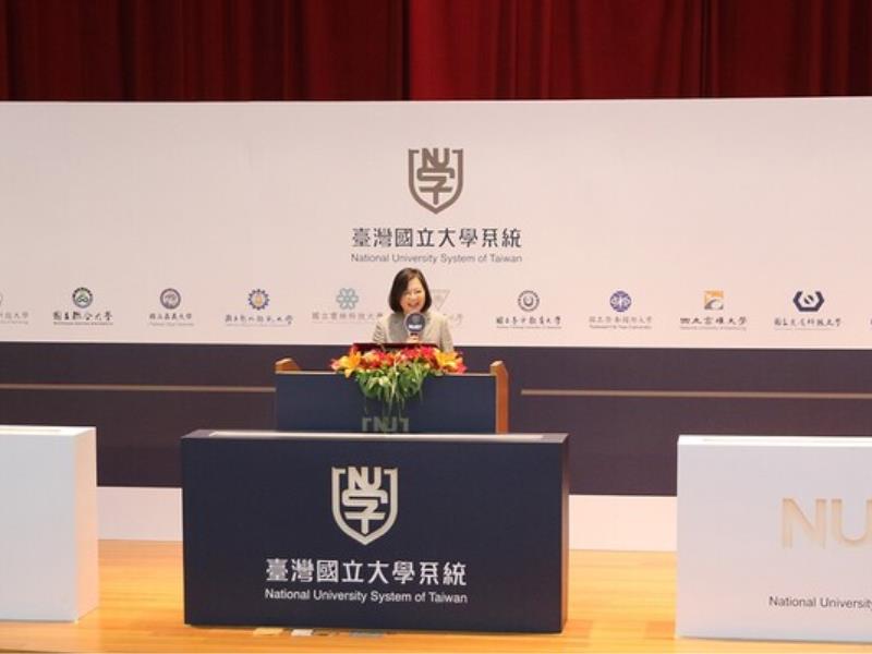 蔡英文總統在致詞表示,臺灣的高教體系近年受到少子女化的影響,因而在招生方面有些困擾,也面臨退場的壓力,因此在有限的資源中共享資源、整合能量,讓高等教育發揮最大的效益,之前陸續有大學系統成立,此次11所各具特色、辦學認真的國立大學,包含10萬多名學生、3千6百位教授、以及1萬門的多元課程,是目前臺灣高教史上最大規模的跨界跨域平台,相信能為臺灣的高等教育開創嶄新的局面。面對世界政經結構的快速轉變,臺灣的高等教育也要負起更大的責任,需要為臺灣培育更多多元的人才,才能讓下一個世代可以共同迎接臺灣未來的挑戰。臺灣國立大學系統不僅是具有規模效應的優勢,未來更會實踐共享課程、推展雙語、整合能量及展望國際的四大目標,相信這樣豐富的教育資源,再加上跨界跨域的密集交流,可為年輕學子帶來更多學習跟思考上的碰撞,激盪出更多新的想法跟創意,開啟更多合作的可能。