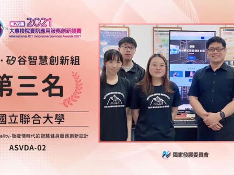 由經濟部、教育部及中華民國資訊管理學會所主辦之「第26屆全國大專校院資訊應用服務創新競賽」於11月5日進行總決賽,全國逾百所大專校院約360隊,以及亞太地區泰國、印尼、馬來西亞、新加坡、斯里蘭卡、緬甸、澳門及中國大陸等8個經濟體19支參賽隊伍。InnoServe是國內最大規模的資訊及創新競賽,從校內選拔到決賽得獎,競爭激烈。聯合大學資訊管理學系(以下簡稱聯大資管)專題共入圍8項決賽,獲得1個分項第一名、2個分項第三名、及2個分項佳作,聯大資管已連續17年在此國內最大規模資訊競賽中展現優異的創新資訊應用成果。