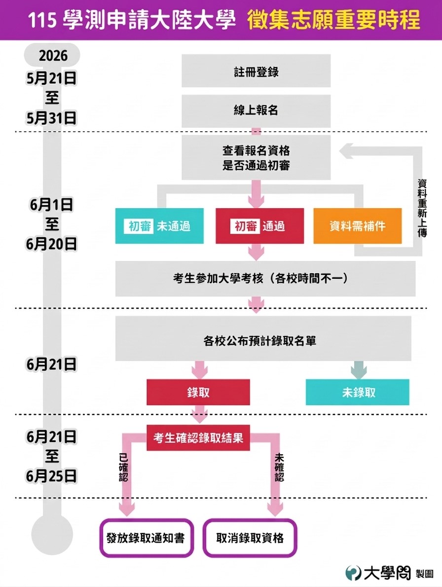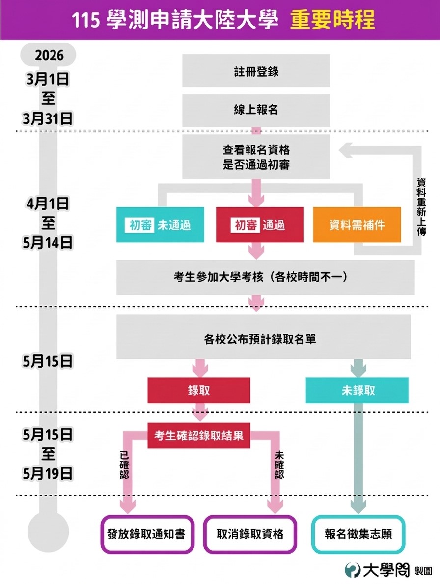 ★請參考:【115學測】大陸大學招生 3/1-3/31線上報名