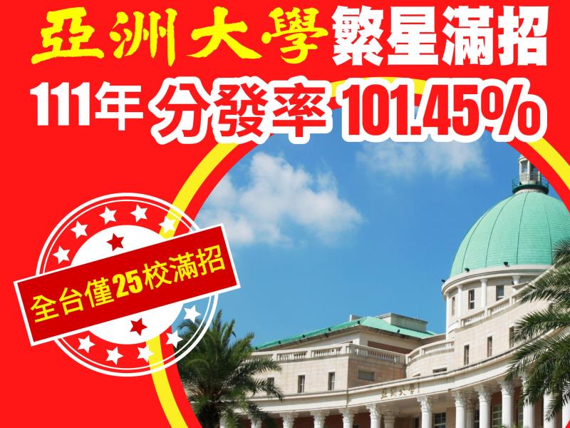 111年大學繁星推薦招生放榜,亞洲大學分發率101.45%,招生率超過100%!