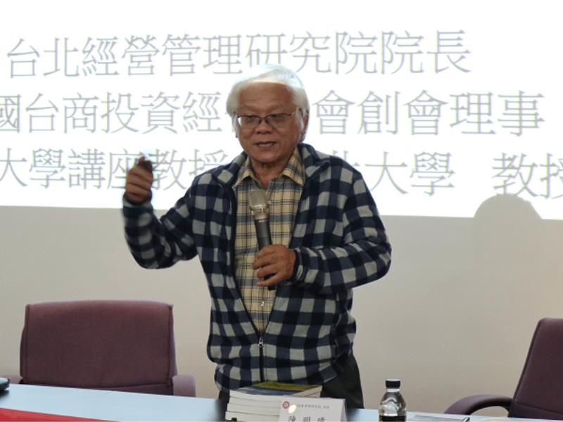 首先,由南華大學林辰璋副校長引言,陳院長除任職台北經營管理研究究院,亦為南華大學講座教授及產業諮詢顧問,多年來辦理之企業經營與人文講座,皆為陳院長邀請聯繫,每位講者皆為各領域一時之選,包括產業界、行政機關及學界中值得尊敬之領導,透過這些經驗和心得的分享,使同學學習在課堂上學不到的經驗。希望透過講座接觸不同領域之企業家及社會賢達人士,讓學生開拓視野。