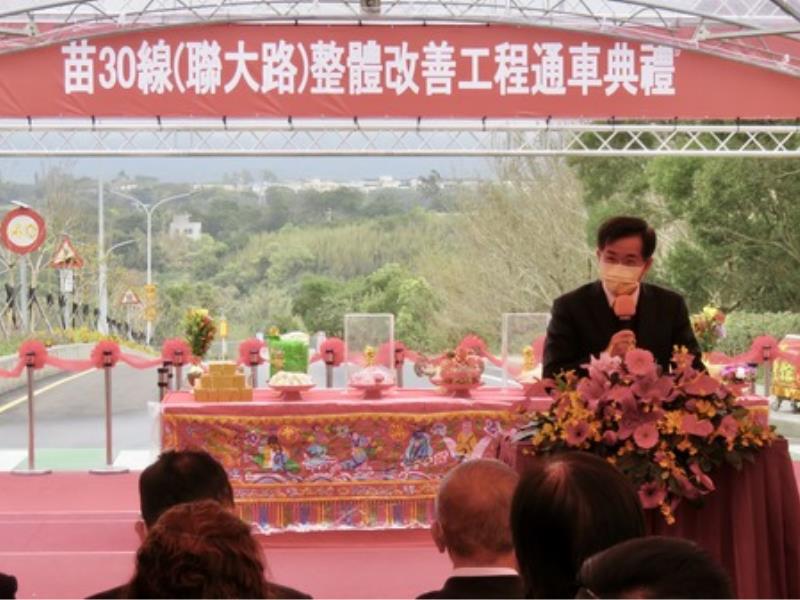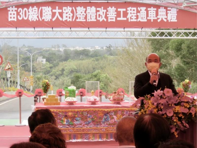 行政院蘇貞昌院長、教育部潘文忠部長關心聯大學生交通安全,於2月18日(星期五)上午10時出席苗栗縣政府舉行改善苗30線(聯大路)通車典禮。行政院蘇貞昌院長致詞表示,聯大路改善工程之前礙於經費,無法改善,4年前上任來苗栗縣視查交通建設即同意全額補助經費,當然也要感謝徐志榮立委和陳超明立委在立法院支持,讓聯大路改善提供師生出入更安全。希望教育部潘部長能注意全國學校師生道路安全,今天很高興能參與通車典禮,希望大家一起讓地方及國家建設更好。