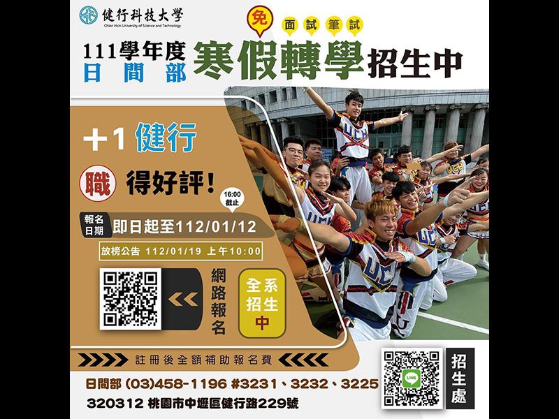 健行科技大學【111學年度日間部寒假轉學考】