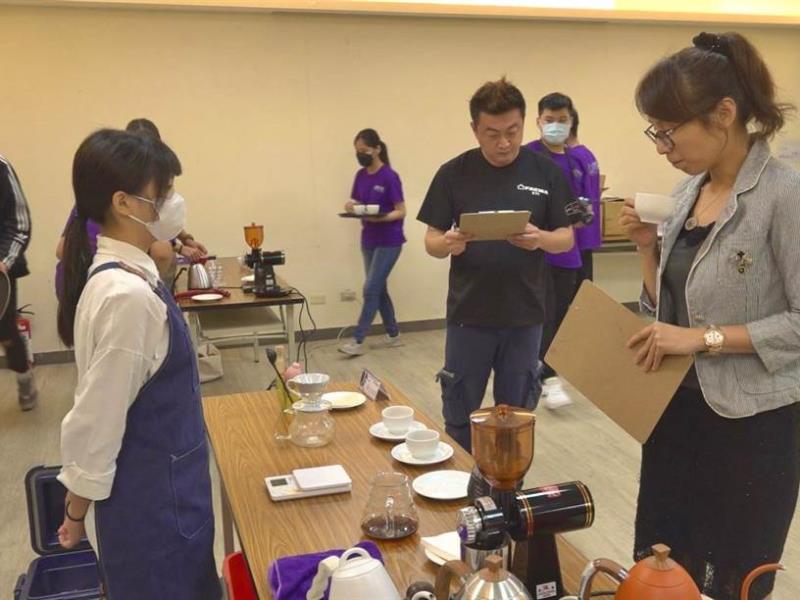 主辦單位指出,參加手沖咖啡競賽選手得10分鐘內沖出2壺,就香味、後韻、風味、整體、純厚度、口感、一致性等評分,決賽同學更得邊沖煮邊說明;參加咖啡拉花競賽選手被要求5分鐘完成2杯圖樣相同的拿鐵,就一致性、創意性、困難與達成度、奶泡品質、專業演出進行評分。