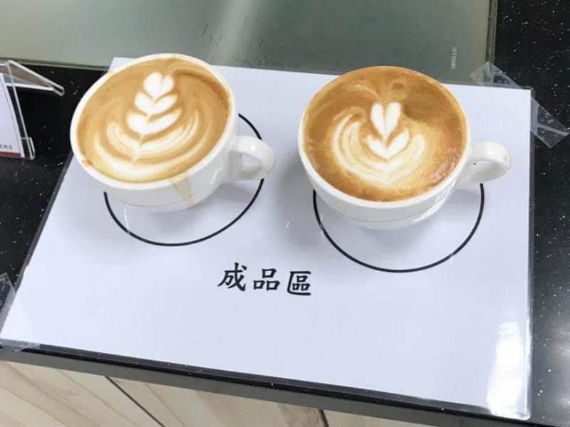 咖啡拉花賽是5分鐘完成2杯拿鐵,就一致性、創意性等進行評分。(南開科大提供/楊靜茹南投傳真)