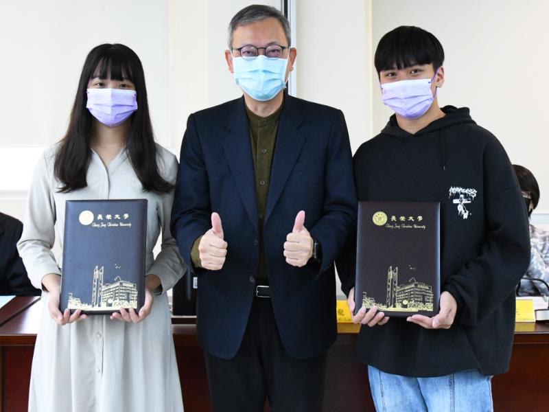 長榮大學111年12月26日於校務會議上特別表揚社工系一年級學生蔡以晨和鄂米迦,兩位同學日前協助在路上發現的高齡85歲阿嬤回家,以資鼓勵。