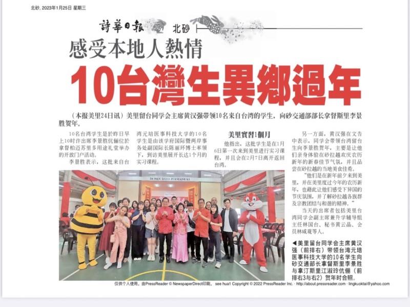 元培護理系學生馬來西亞實習,異鄉過年獲接待並登上當地媒體報導