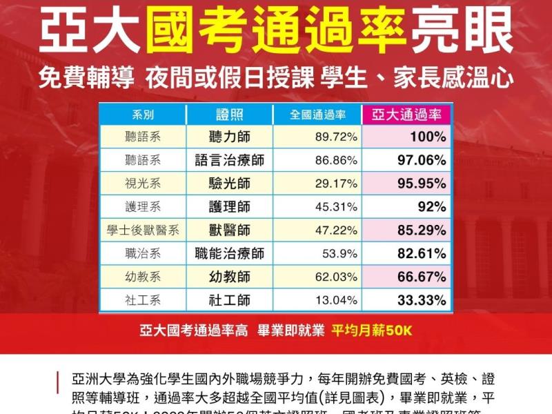 #亞洲大學 #國考通過率 #免費輔導班 #英檢 #國考 #證照 #畢業即就業