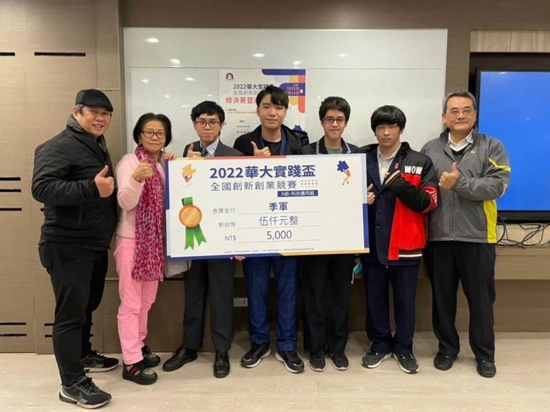 龍華科技大學工程學院PBL智慧機器人專班陳進柏與PBL物聯網專班林書聿、劉鎮瑜與楊昱倫4位同學,由資訊網路工程系王昱晟助理教授指導,成立「走南闖北」工作室,團隊製作出針對學習法律知識的遊戲「Animal Judge」,透過社群平台、影視平台推廣,提供學子及想要學習法律的民眾一個新型式的學習管道,獲得2022華大實踐盃全國創新創業競賽科技應用組季軍。
