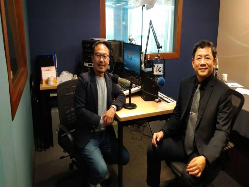 (大)元培校長王綮慷(右)接受廣播電台節目主持人袁常捷專訪