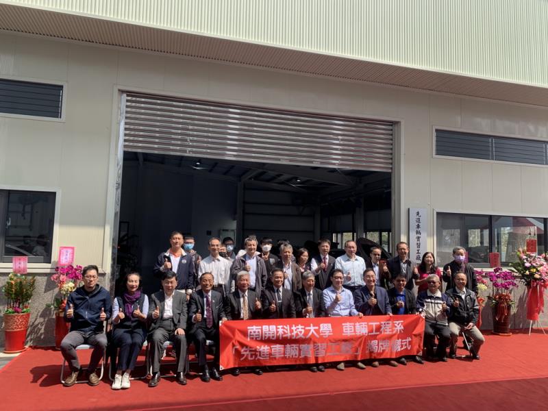 南開科技大學車輛工程系新建第三棟先進車輛實習工廠這學期正式啟用,30日上午由董事長、校長、各高中職學校與知名車廠代表等舉行揭牌儀式,同學們很開心能在南開習得國產車與進口車的維修保養,不僅接受輔導考照,在學實習就能領薪,畢業直接銜接工作。技術受到業界肯定,日前有20多家業者來校徵才。