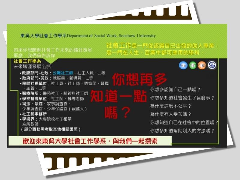 歡迎來東吳大學社會工作學系,與我們一起探索!