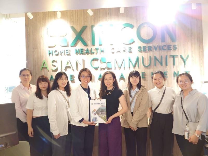 元培醫管系老師黃曉令(左四)帶領學生前往美國實習,獲實習機構主管Crystal(右四)歡迎與肯定