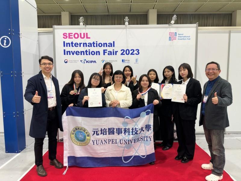 韓國首爾國際發明展為國際大型發明展之一,發明人以能獲獎為榮;元培團隊由醫學影像暨放射技術系及護理系3位老師率領9名學生、帶著3件作品,與台灣發明協會組團、前往參加2023韓國首爾國際發明展,11月3日大會成績出爐並頒獎;元培研發團隊能於國際首爾發明大展中獲獎,充分展現出長期致力培養學生在醫事技術專業基礎上跨域研發,以及拓展國際視野的努力與成果。