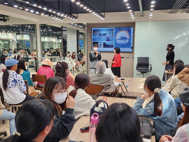 在這場獨具匠心的藝術盛宴中,學子們紛紛與江董事長熱情互動,踴躍交流資訊,師生雙方受益匪淺。此次活動不僅豐富了學術氛圍,更凝聚了校園文化的力量,提升了嶺東時尚學院藝術人文美學。