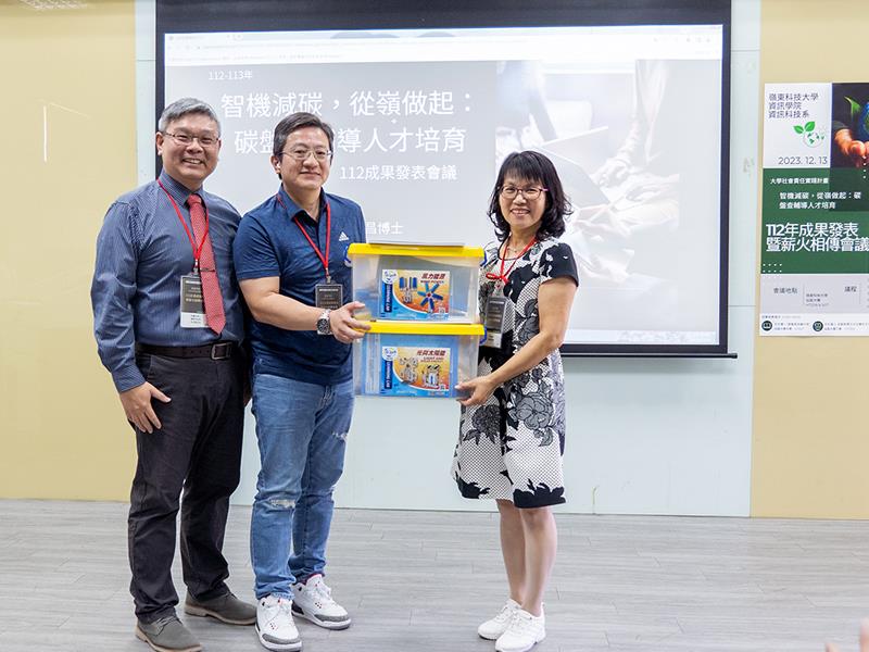 資訊學院資訊科技系於12月13日辦理「112年USR成果發表暨薪火相傳會議」進行成果發表,分享各子計畫中在碳盤人才培育、協助廠家進行溫室氣體盤查(GHG)報告建構與建立企業GHG內盤員機制。於志工服務計畫中,閎緯科技教育張宸緯總經理有鑑於環境教育重要以及嶺東科大在教材設計上的專業,響應捐贈可搭配教材之智能教具於計畫實踐場域–臺中市春安國小,並於活動前一日辦理捐贈儀式,由春安國小陳貞蓉校長接受來自於嶺東科大所設計之低碳教材以及張總經理捐贈教具,陳校長致詞時,特別感念嶺東科大近幾年對春安國小的課程協助,讓學校建構STEAM教學環境得以發展順暢,同時學生都能感受到豐富的教育資源,深感榮幸教育部USR計畫可以實踐於校內,更帶來更多優質教育者以及業界專家的指導。
