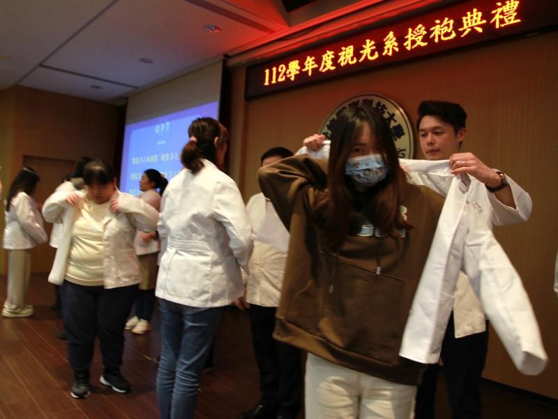 白袍象徵專業與責任! 元培醫事科技大學視光系27日首度辦理授袍典禮,由校內師長及業師、為即將前往實習場域的學生穿上白袍,勉勵大家將學校所學專業理論化為實務技能,完成進入職場的最後一哩路,成為守護民眾視力健康的優秀驗光師。