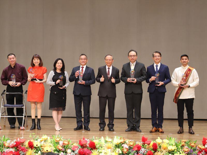 南華大學舉辦創校28週年校慶暨校歌發表會,頒發第11屆傑出校友獎。由林聰明校長(右4)頒獎。