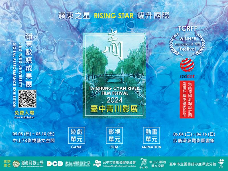 【2024臺中青川影展】首度集結「嶺東數媒」學生們國內外獲獎作品成果,其中包括德國紅點設計獎、國際動畫影展得獎、新一代設計展獲獎、放視大賞大獎、新北市學生影像新星獎、巴哈姆特ACG創作大賽獎項、HPC國網3D動畫大賽金獎、技專校院電腦動畫競賽得獎等,希望透過影展平台暨回顧成果展的方式,展演「嶺東數媒之星」優秀學生的精選作品,並推動與大臺中觀眾的交流、讓在地故事能連結與SDGs永續發展的議題,以提昇影視美學教育與動畫藝術創作,並期待能建立專屬於【臺中青川影展】的全新品牌及口碑形象。