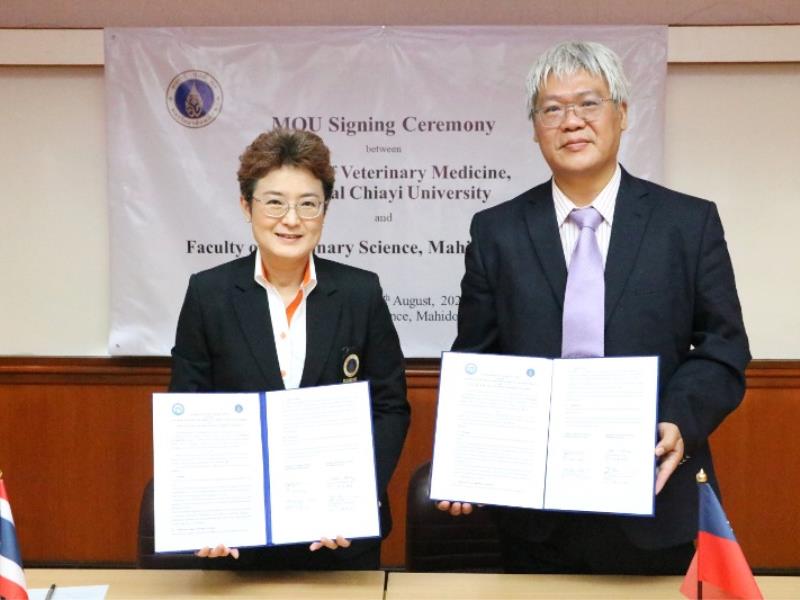 圖1:嘉大獸醫學院賴治明院長(右)與泰國瑪希竇大學獸醫學院簽學術交流訂合作
