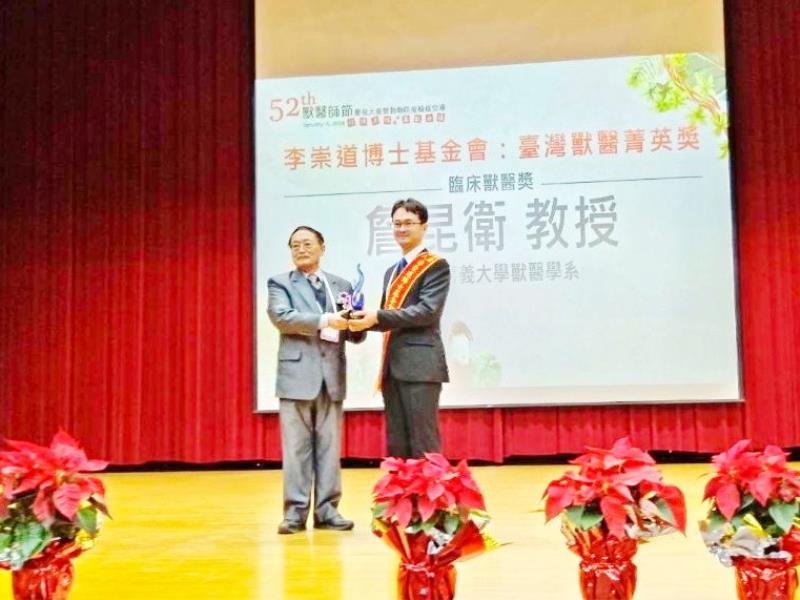 圖2:嘉大獸醫學系詹昆衛教授榮頒臺灣獸醫菁英獎
