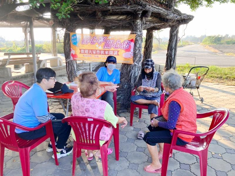 「輔導與諮商」是嘉大輔導與諮商學系的專業領域,如何把這項專業帶到農(漁)村中,協助沒有諮商經驗的長者呢?嘉大攜手嘉義華山基金會在成人及老人諮商課程中,傳授學生與長者互動心法,當了解長者的心理狀態後,走進嘉義市區、鄉鎮、漁村等不同社區場域,深入高齡者的生活圈,進行獨居長者居家關懷與晤談。為能深入接觸在地居民,也在社區衛生室前的六角亭開設常態性的「觀心亭」,讓前來看診與領藥的長者及家屬有機會坐下來談心。