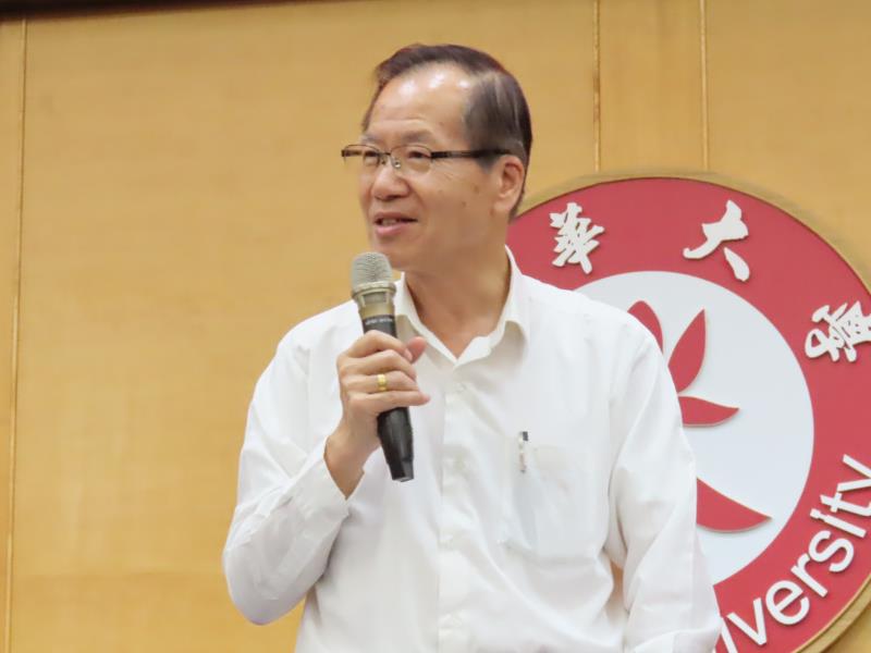 南華大學舉辦企業經營與人文講座,邀請美美企業集團董事長曾正堅蒞校演講,林辰璋副校長開場致詞。