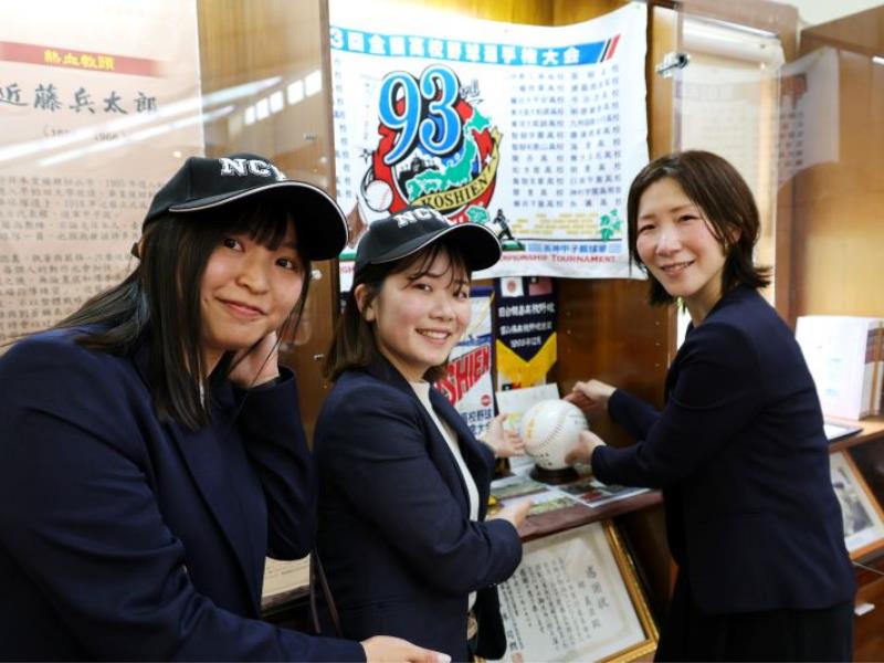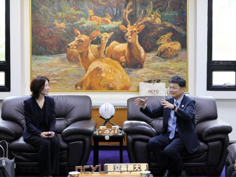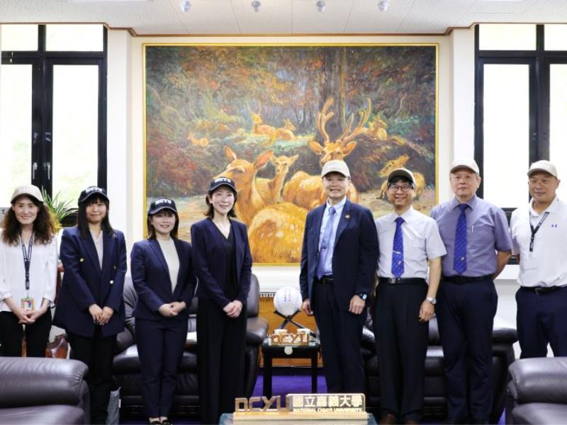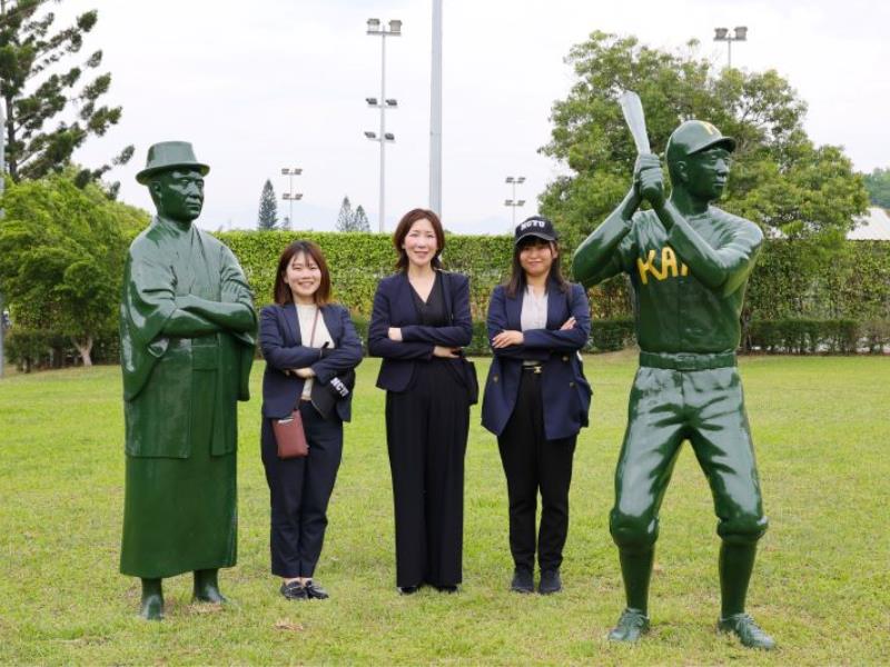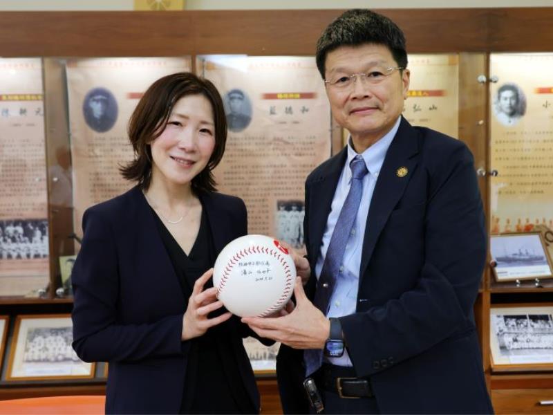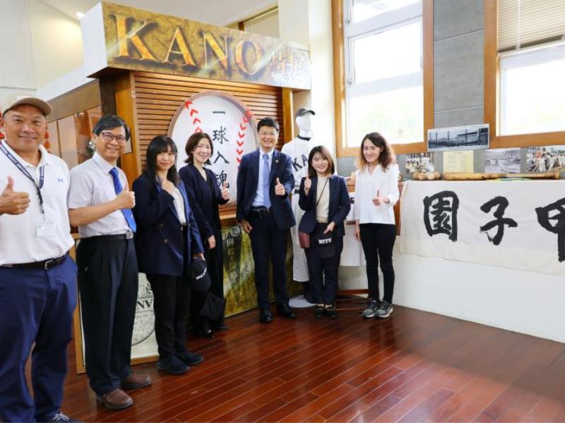 日本阪神甲子園球場湯山 佐世子代理球場長、海外事業負責人高本穗乃花小姐及張方倢小姐於5月20日至嘉義大學參訪,實地了解嘉大《KANO》棒球相關校史文物,以及嘉大《KANO》棒球隊發展現況。當日嘉大由林翰謙校長、張俊賢副校長、陳瑞祥副校長、林芸薇主任秘書、體育室鍾宇政主任(嘉大棒球隊總教練)及相關同仁與會,雙方將持續強化棒球活動資訊交流與宣傳合作以及人員(或球隊)互訪,並對於臺日棒球交流及嘉大球員赴日發展等議題交換意見。