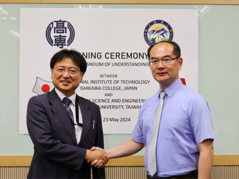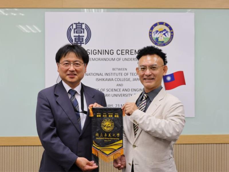 嘉義大學理工學院與日本石川工業高等技術學校(以下簡稱石川高專)於5月23日續簽第二期五年學術合作備忘錄(以下簡稱MOU)。嘉大理工學院由徐超明院長、電子物理學系蘇炯武教授、應用數學系彭振昌主任及資訊工程學系葉瑞峰主任代表出席;日本石川高專則由山田健二教授親自蒞臨蘭潭校區理工學院,為雙方續簽第二期學術交流合作展開精采的一頁。