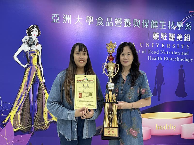 亞洲大學保健系陳同學與林同學分別獲「 國際化妝設計圖組」亞軍、殿軍。