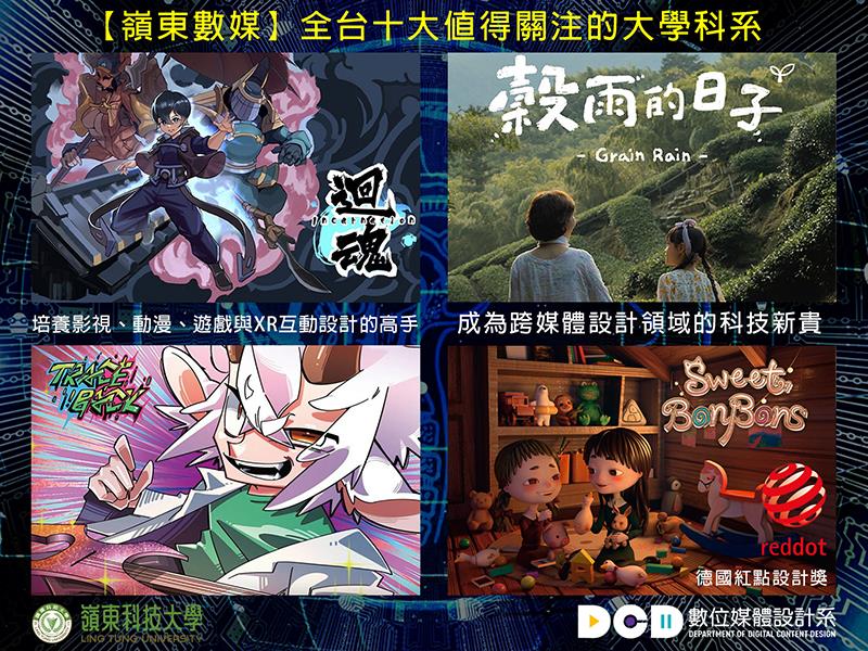 「嶺東數媒」是全台唯一系內橫跨影視媒體、動漫媒體、遊戲媒體與XR互動媒體的科系,以「動態影音設計」與「感知互動設計」為主軸,教導學生元宇宙核心之影視設計、動漫設計、遊戲設計、XR互動設計等內容,創造出全國唯一媒體設計跨領域之特色科系。