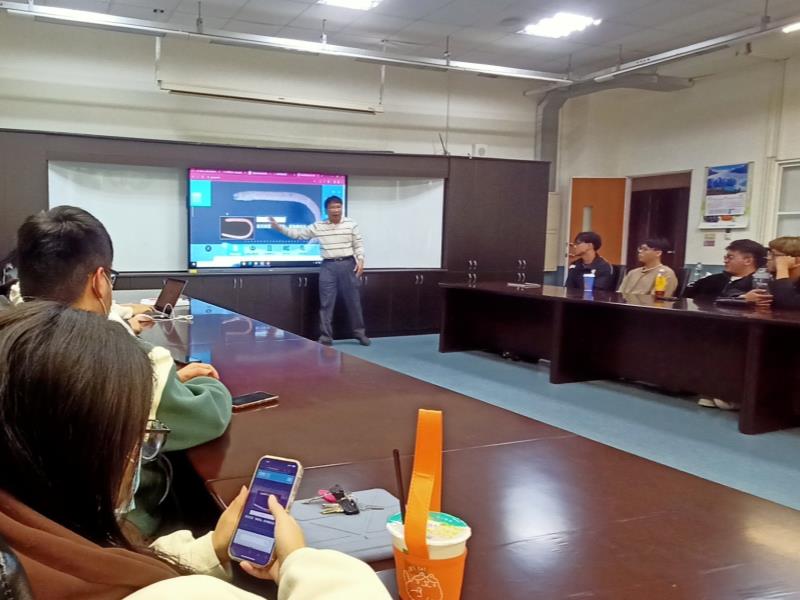 圖2:嘉大微生物免疫與生物藥學系王紹鴻主任進行大專生研究計畫解說