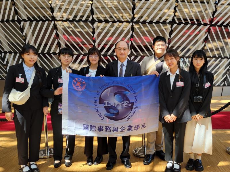 南華大學海外資源豐富多元,國際事務與企業學系鍾志明教授(左4)帶領學生參加學海築夢計畫,至比利時自由大學外交學院參訪交流。