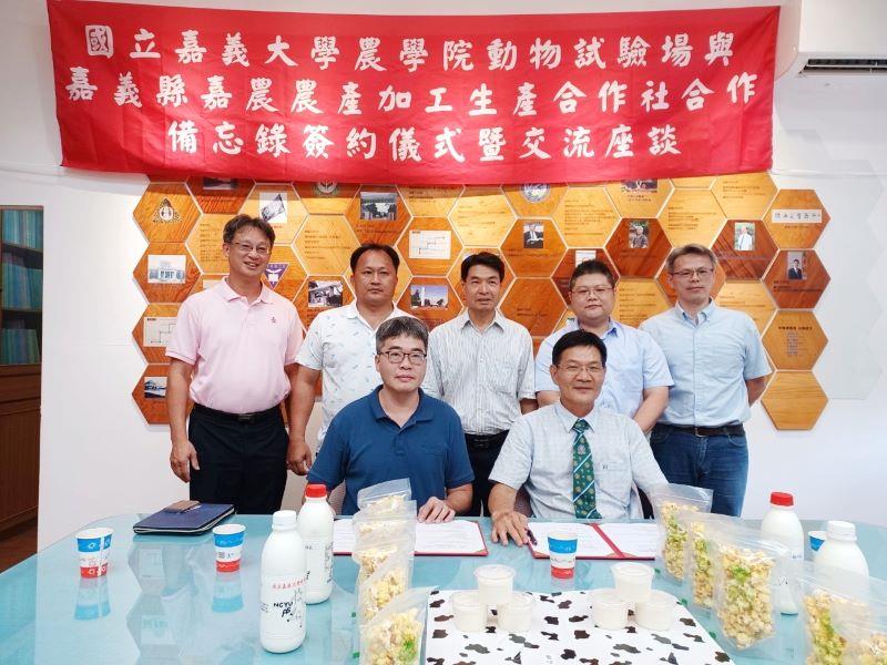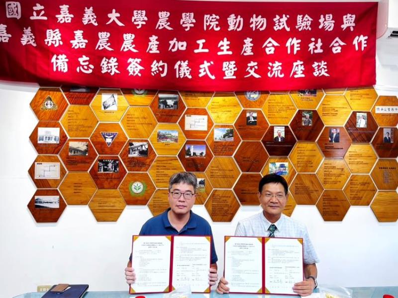 嘉義大學農學院與保證責任嘉義縣嘉農農產加工生產合作社(以下簡稱嘉農農產加工生產合作社)7月15日簽訂產學合作備忘錄(以下簡稱MOU),將由嘉義大學與嘉農農產加工生產合作社攜手合作開發商品,共同品牌行銷,讓「嘉義大學」實在且安心的品牌深植在每個人的心中。