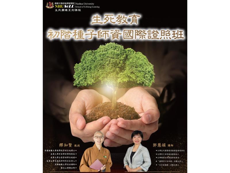 南華大學終身學院開辦生死教育初階種子師資國際證照班,圖為活動海報。
