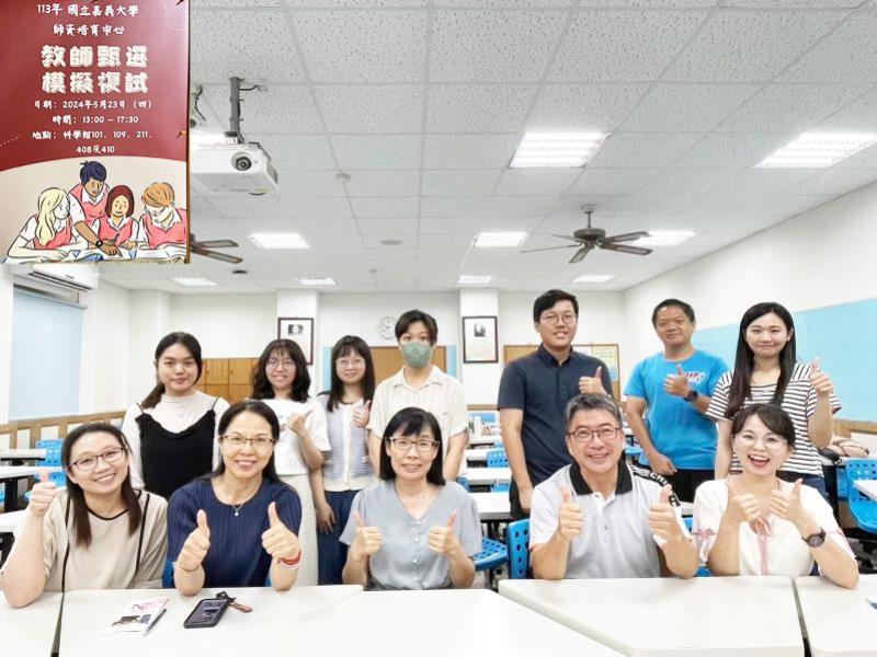 圖1:嘉大師資培育中心邀請具教學經驗之師長一同為師資生進行模擬試教演練