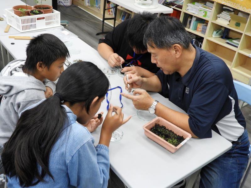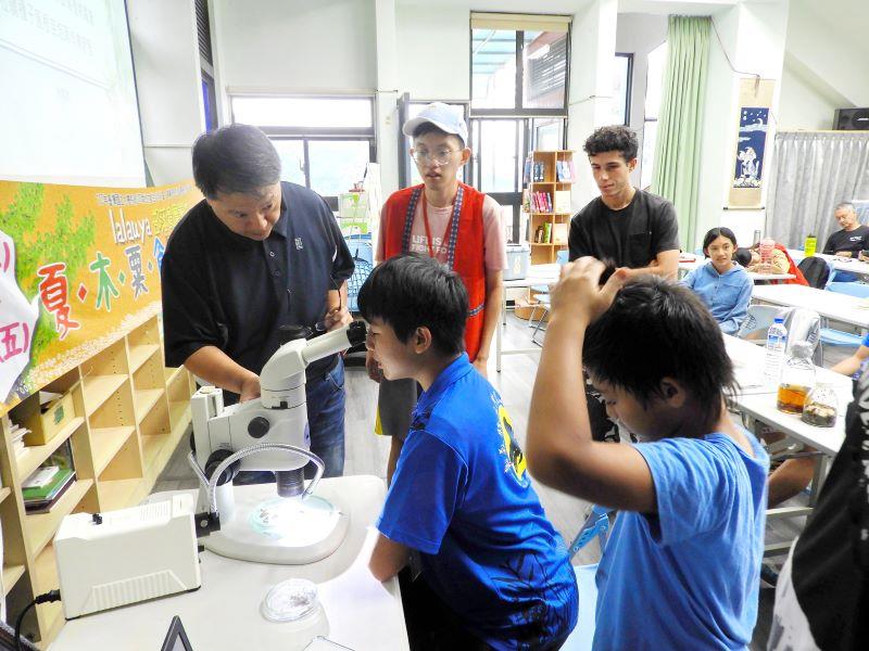 圖5:嘉大森林系林瑞進副教授指導學生進入微鏡下的植物世界