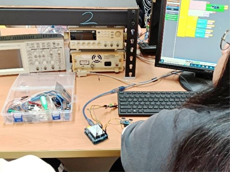 圖2:「智慧生活與創意設計」課程,授課老師實際教授超音波倒車雷達