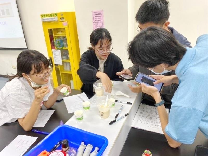 圖4:「微生物與生活」課程,各組同學比較不同菌種以及基質的組合搭配所製成的優格風味