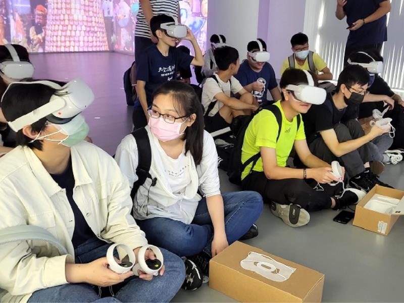 圖/學生們體驗配戴VR眼鏡,感受科技所帶來的樂趣。
