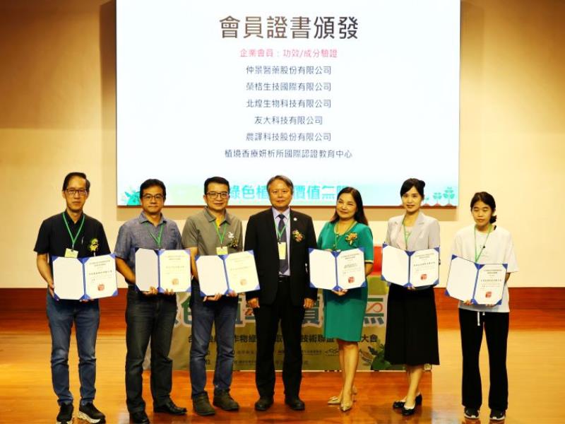 台灣機能性作物綠色萃取技術產業聯盟於9月13日在嘉義大學蘭潭校區國際會議廳舉行會員大會,大會主題為「綠色植萃,價值無限」,吸引超過30家農民及企業會員參加,並獲得國家科學及技術委員會產學及園區業務處的鼎力支持。該日國科會產學及園區業務處陳昭蓉副處長、嘉義市藥用植物學會余豐科理事、台灣中藥臨床學會蘇超麒理事長、國際芳香保健照護協會黃敏菁理事長、台灣化妝品科技學會林恩仕理事長、台灣生物科技暨健康產業協會賴明道理事長及中華科技大學郭鍾達校長等多位產學研之專家學者及聯盟會員齊聚一堂,共同探討綠色萃取技術在臺灣中醫藥產業中的創新應用及未來發展前景。
