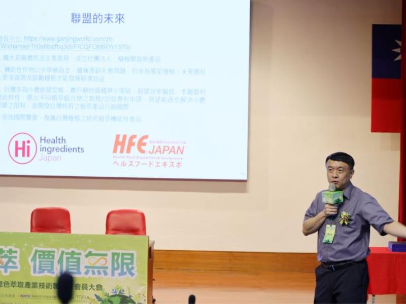 台灣機能性作物綠色萃取技術產業聯盟自今年初成立以來,積極匯聚產學研力量,與理念相符之農民及企業合作,共同於國際市場推廣綠色萃取技術,推動綠色中醫藥產品之研究與應用,達成永續發展的目標。嘉大林翰謙校長開幕致詞表示,綠色化學主要是從源頭減少製程中可能產生的廢棄物和污染,透過更環保的方式來降低對環境的影響。此作法不同於事後的廢物處理,而是在產品設計和製造過程中就考慮到環境保護,達到可持續發展的目標。林校長也特別強調嘉大將不遺餘力促進技術合作及知識共享,提升臺灣在機能性作物開發及中草藥萃取領域的國際競爭力。