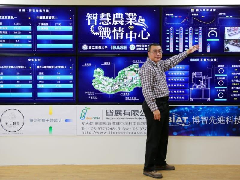 圖2:嘉大生機系智慧農業戰情中心,AIoT智慧物聯網技術結合遠端監控系統進行農業大數據分析,打造可視化智慧農業整合架構