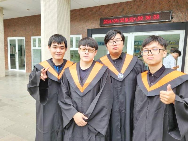 圖6:嘉大生物機電工程學系陸品丞同學(左二)畢業典禮時與同學合影