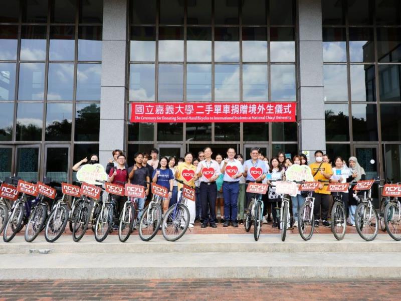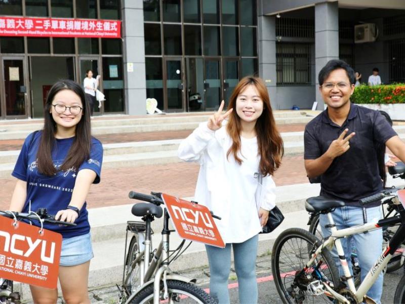 二手單車捐贈活動,將環保理念與愛心行動結合,將校園中的二手單車捐贈給有需要的境外生,希望藉此提升他們在校園內外的通勤便利性,並幫助他們融入嘉義這個美麗的城市。來自受贈的境外生代表也發表感言,感謝嘉大的愛心捐贈,這些單車將提升他們在校期間的生活品質與便利性。