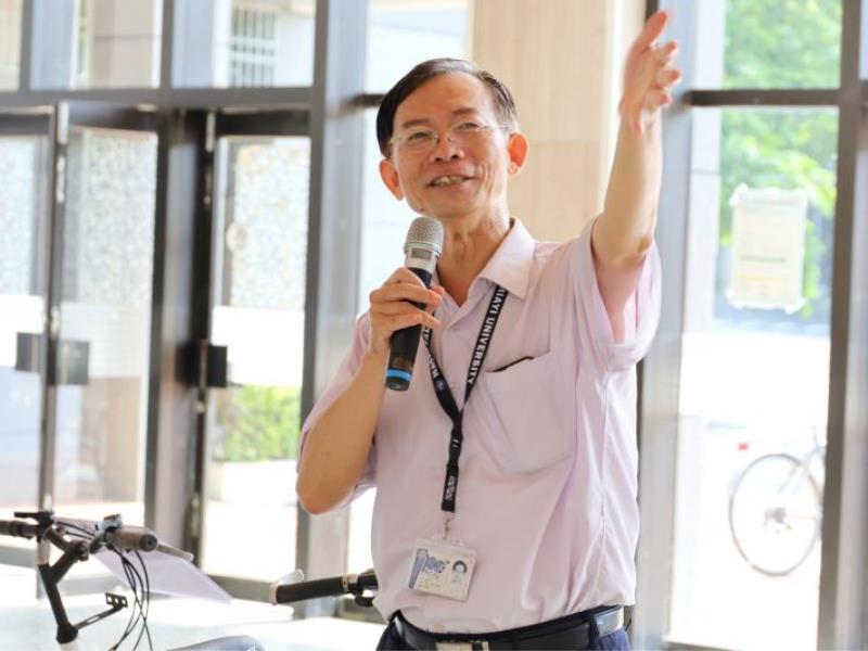 學務處唐榮昌學務長致詞表示,1998年由法國發起的世界無車日,現在已成為全球性環保盛事,鼓勵大家可以騎腳踏車上課或上班,一方面運動讓自己身體健康、一方面也能享受嘉大校園綠意盎然的清新空氣。