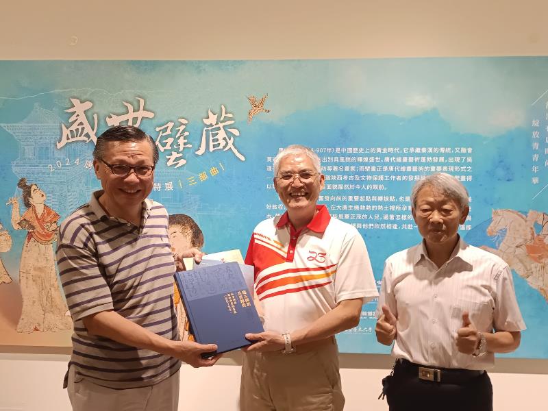 「盛世壁藏~唐代壁畫文化特展」是由中國宋慶齡基金會、陝西省文物交流協會、陝西歷史博物館、社團法人中華翰維文化推廣協會主辦,自2020年起至2023年連續四年在台灣各大學藝文中心巡迴展覽,博得各界好評。繼首部曲介紹唐代的盛世輝煌,二部曲描繪唐人的節慶與日常後,2024年登場的第三部曲,特別與南華大學合作,並以「青春年華」為題,從新的視角讓觀眾領略唐代壁畫中一代盛世青春男女的身心活動與生活情趣。陝西省文物交流協會段紅升理事率領專業人士一行6人蒞臨共襄盛舉。