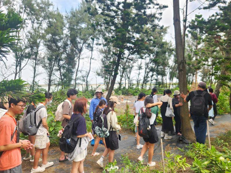 活動首先帶領學生參訪擁有400年歷史的太聖宮,了解在地居民對明朝媽祖的崇敬,透過這座歷史古蹟感受文化的深厚底蘊。學生也使用「好美圖鑑」APP,自主探索村落的獨特風貌,並進一步參觀由嘉大師生執行國科會人文創新與社會實踐計畫深耕當地所打造的「小保安林」生態園區,學習精油植物的多樣性與自然保育的實踐方式,從中體會如何透過具體行動保護與活化當地的生態資源。
